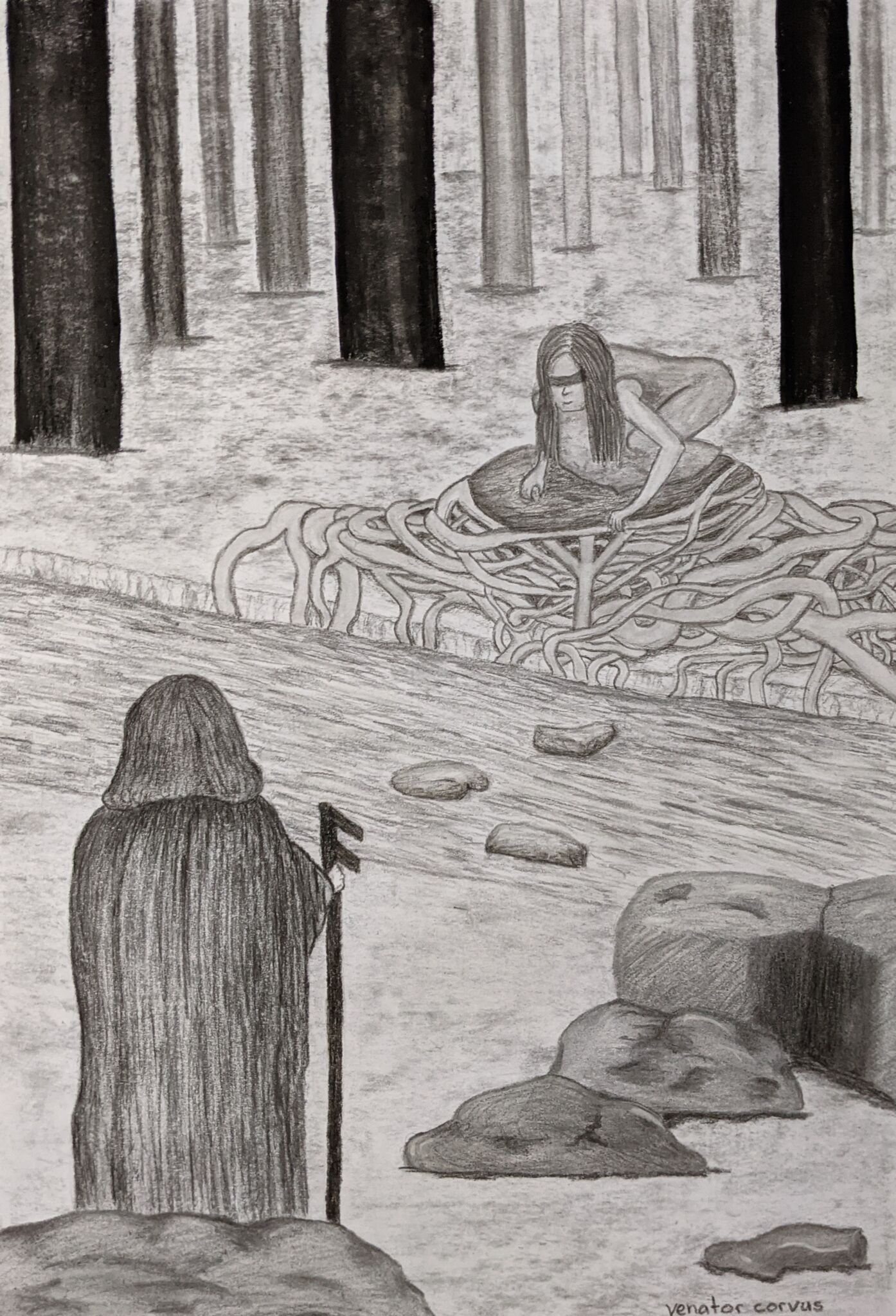 venator corvus can often be found frequenting her local creek, where she lounges with lizards, studies wombats, and talks to a grandfather tree. when she isn't helping the local animals clean up after humans, she is listening to music and getting lost in her latest art project. venator is a self-taught artist with no formal training. she does not need to be rich and famous, but she would like a lounge chair that isn't broken